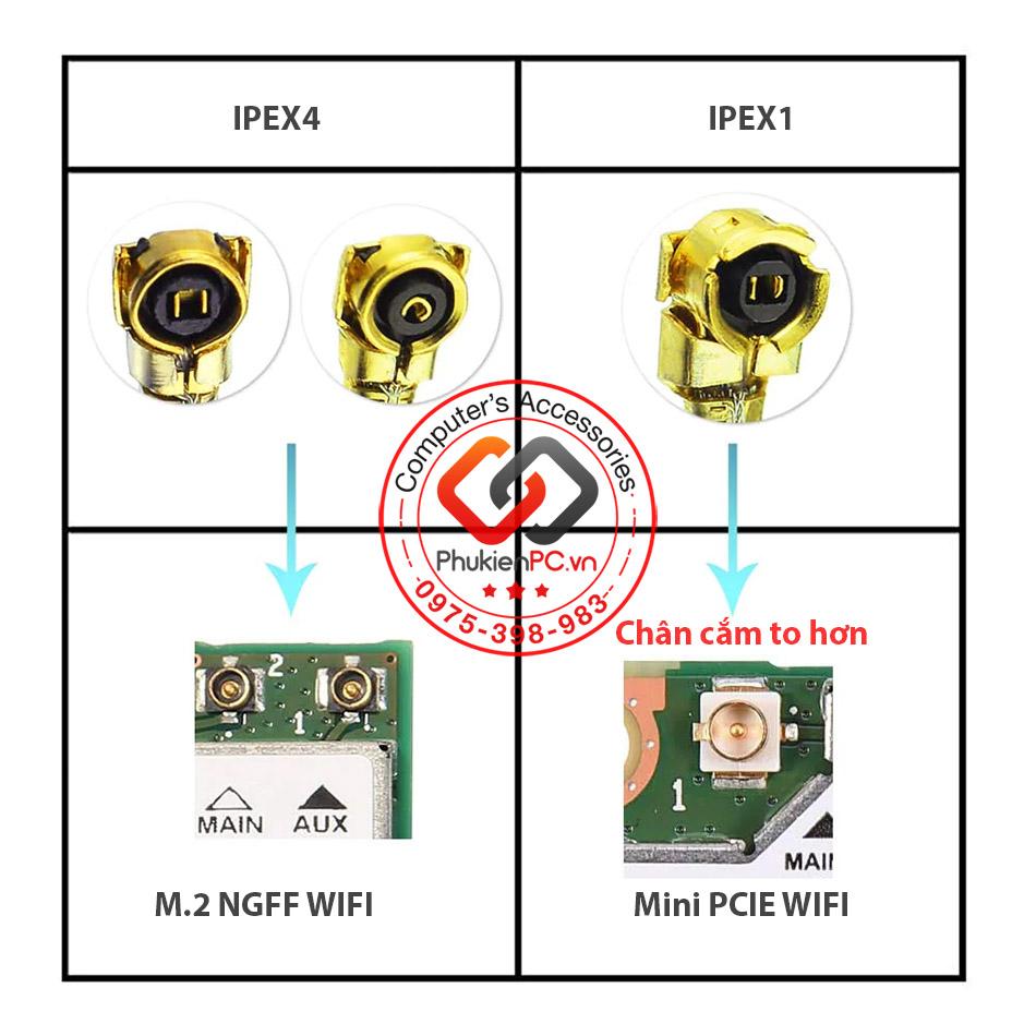 Lưu ý: chỉ lắp cho các dòng Wifi chuẩn Mini PCIE, không hỗ trợ các dòng mới Wifi M.2 NGFF