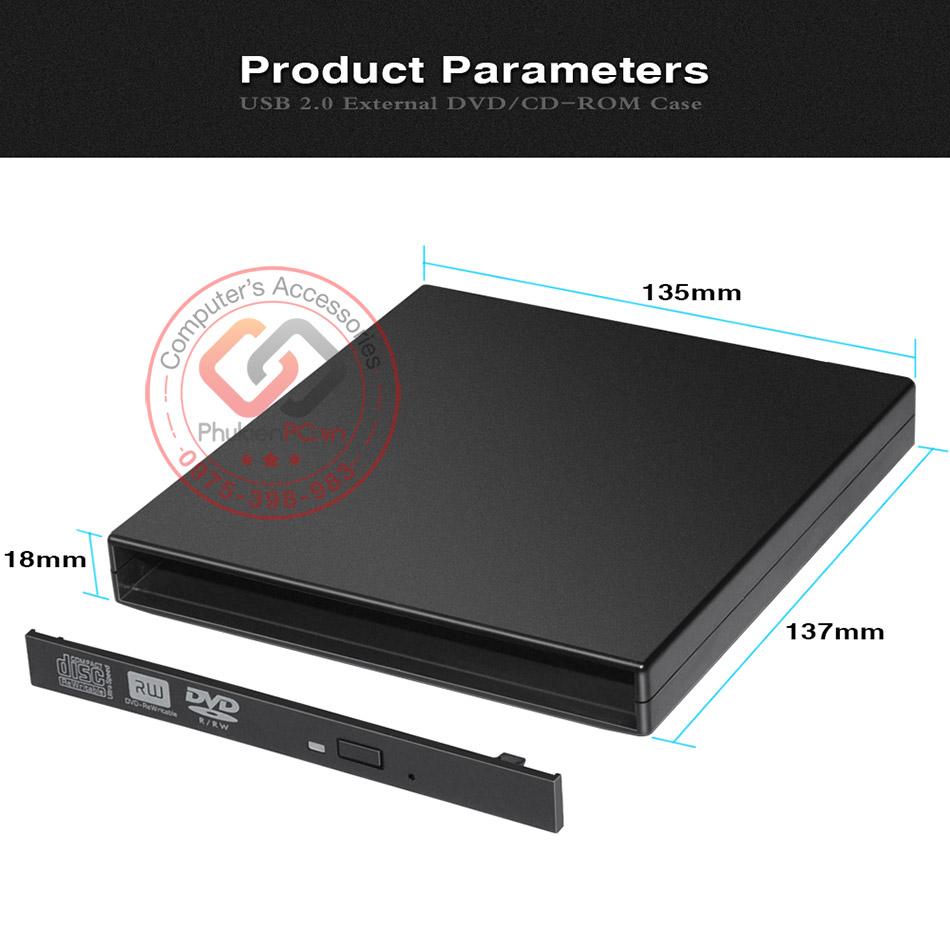 Box ổ đĩa quang DVD Laptop giao tiếp ra USB 2.0. Cắm tự nhận driver, không cần cài đặt phần mềm. Sử dụng cho máy tính bàn PC, máy tính đồng bộ DELL, HP, Lenovo…Macbook, iMac, Laptop các loại.