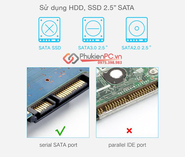 Lưu ý: không sử dụng được cho ổ cứng PC (ổ HDD 3.5 inch). Bạn tham khảo cáp USB sang HDD cho ổ 3.5 ở đây