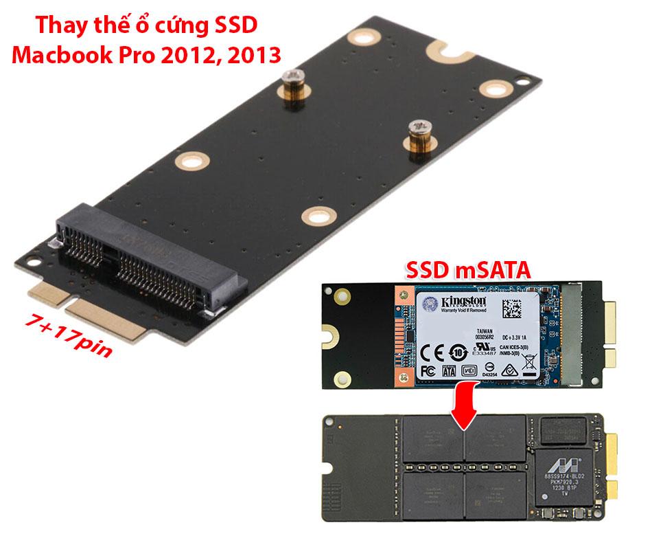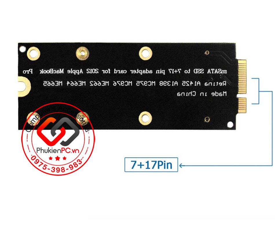 Adapter chuyển ổ cứng mSATA to 7+17pin SSD Macbook Pro 2012, 2013, thay thế nâng cấp dung lượng ổ cứng Macbook