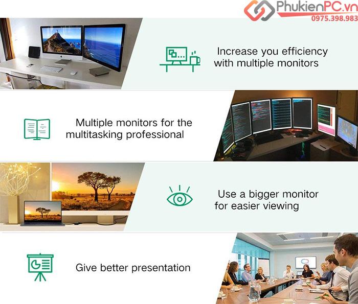 Giải pháp hoàn hảo kết nối Laptop, Macbook ra 2 hay nhiều màn hình cho phép bạn hiển thị nội dung nhiều hơn ra màn hình lớn