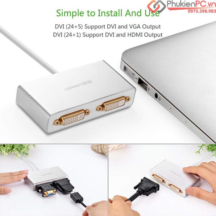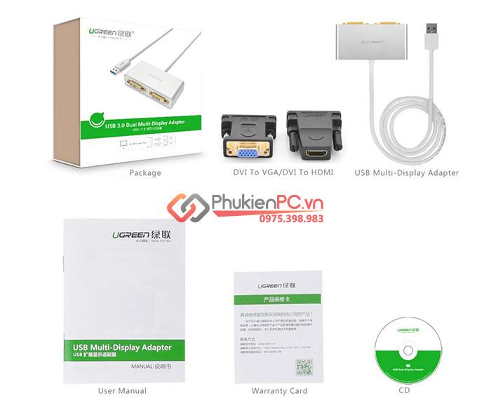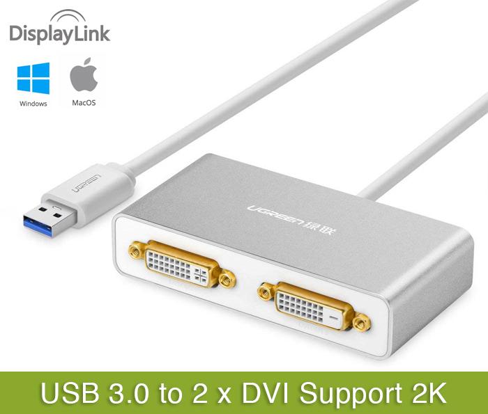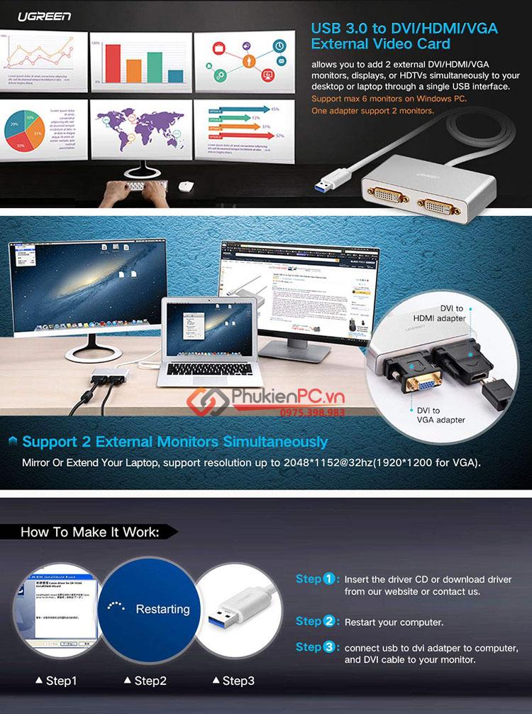 Cáp USB 3.0 to Dual DVI Ugreen 40246 cho Macbook, Laptop, PC