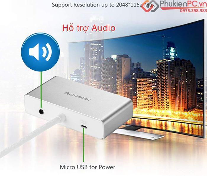 Đi kèm cáp Ugreen 40246 adapter chuyển DVI-I to VGA và DVI-D to HDMI. Bạn sử dụng cho màn hình LCD có DVI, Tivi HDMI, máy chiếu VGA một cách linh hoạt. Hỗ trợ âm thanh Audio (qua HDMI) và nguồn phụ 5V sử dụng bổ sung khi thiếu nguồn.