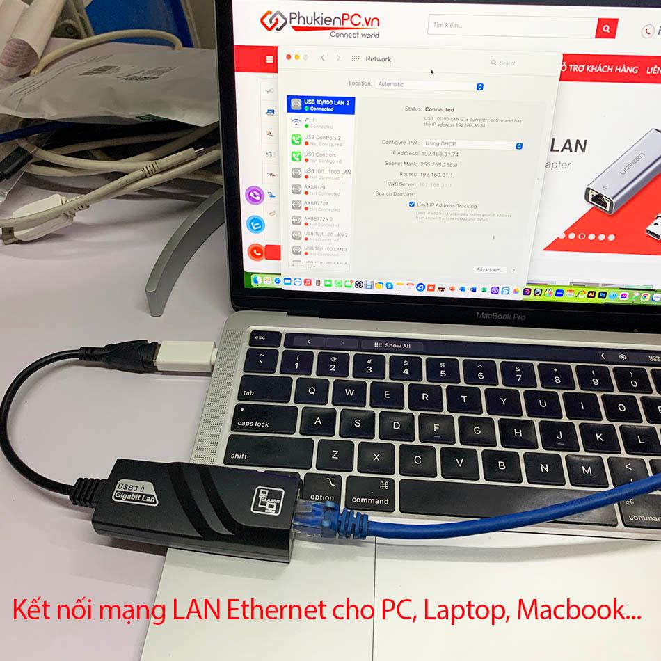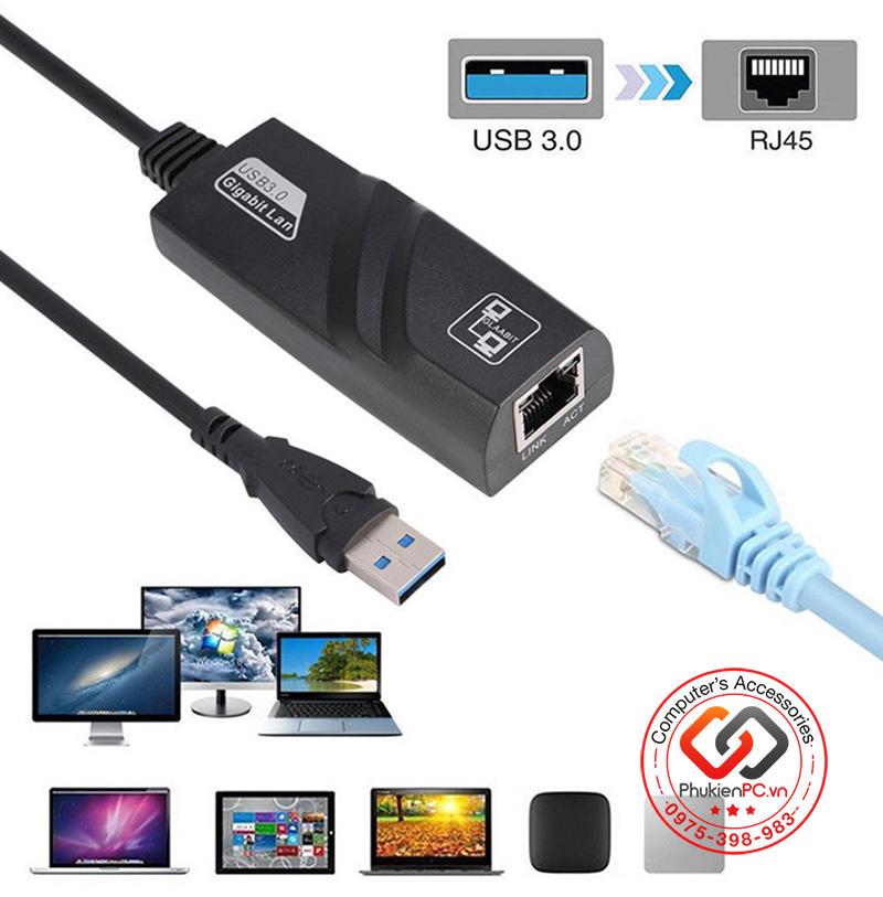 Cáp USB 3.0 sang LAN Ethernet 1000 Mbps cho Macbook Laptop PC- Auto driver