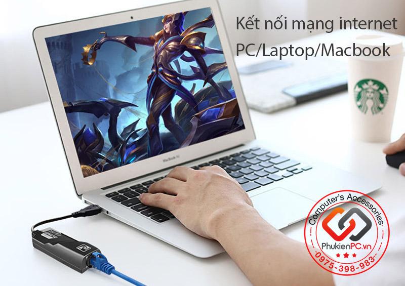 Cáp chuyển đổi tín hiệu từ USB sang cổng mạng LAN (ethernet). Sử dụng kết nối mạng LAN, mạng nội cho cho các dòng Laptop, Macbook, Surface, PC, máy tính đồng bộ.