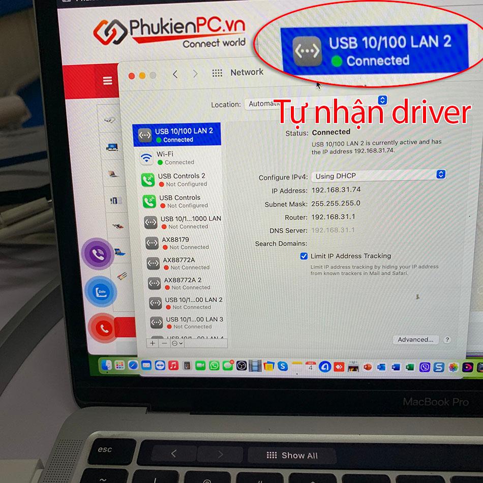 Giải pháp kết nối dây mạng cho Laptop, Macbook Pro, macbook Air…Khắc phục tình trạng cài đặt driver phức tạp USB sang Ethernet của các hãng khác.