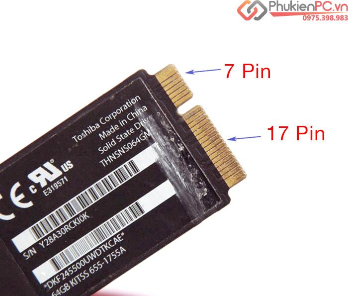 Hỗ trợ các loại ổ cứng M.2 chuẩn SATA kích thước từ 2230, 2242, 2260, 22x80mm. Không hỗ trợ ổ cứng M.2 PCIe. Chân cắm SSD Macbook 2012 gồm 7+17 Pin (các dòng Macbook Air/ Pro sản xuất năm khác không sử dụng được)