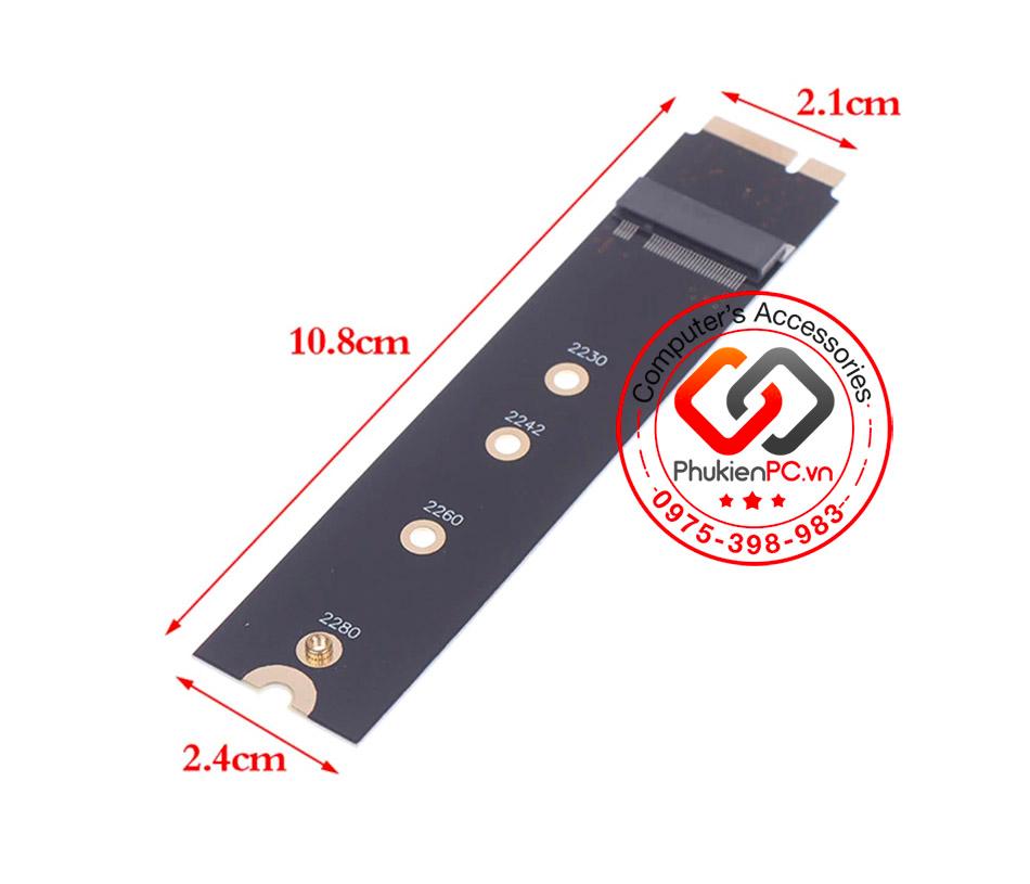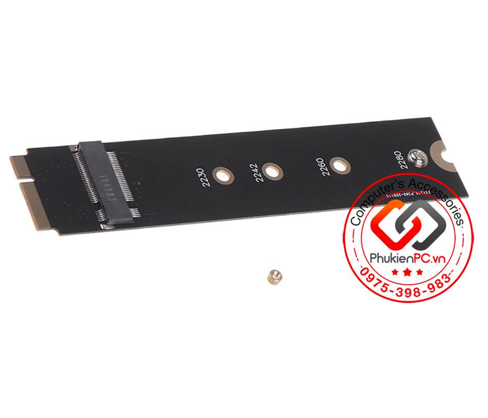 Adapter chuyển đổi ổ cứng SSD M2 NGFF SATA (B & M Key) sang SSD Macbook Air 2012, Macbook Retina 2012. Sử dụng ổ cứng M.2 SATA thay thế ổ cứng SSD 7+17 pin của Macbook. Thay thế ổ cứng macbook lỗi, hư hỏng hoặc nâng cấp dung lượng lưu trữ cho macbook (từ 128gb lên 512gb, 1tb….) Giải pháp tiết kiệm chi phí, dễ dàng mua ổ cứng và lắp đặt.