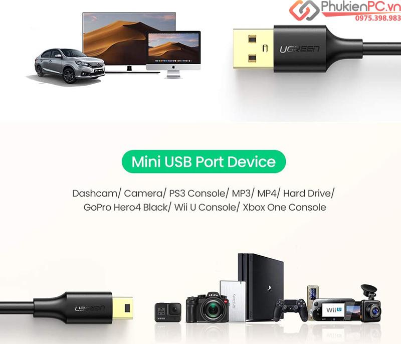 Dây USB to Mini USB 5Pin sử dụng rộng rãi cho các thiết bị điện tử, máy tính: PDA, MP3, MP4, tay cầm game, micro phone, máy ảnh, máy quay phim, GoPro HERO HD, HERO 3+, PS3 controller, Astro A40/50…