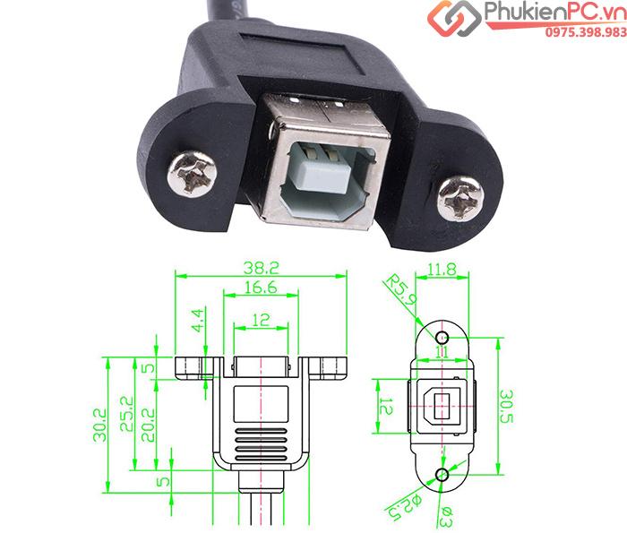 Cáp USB 2.0 Type B Female to Mini USB Male bắt vít 0.5M