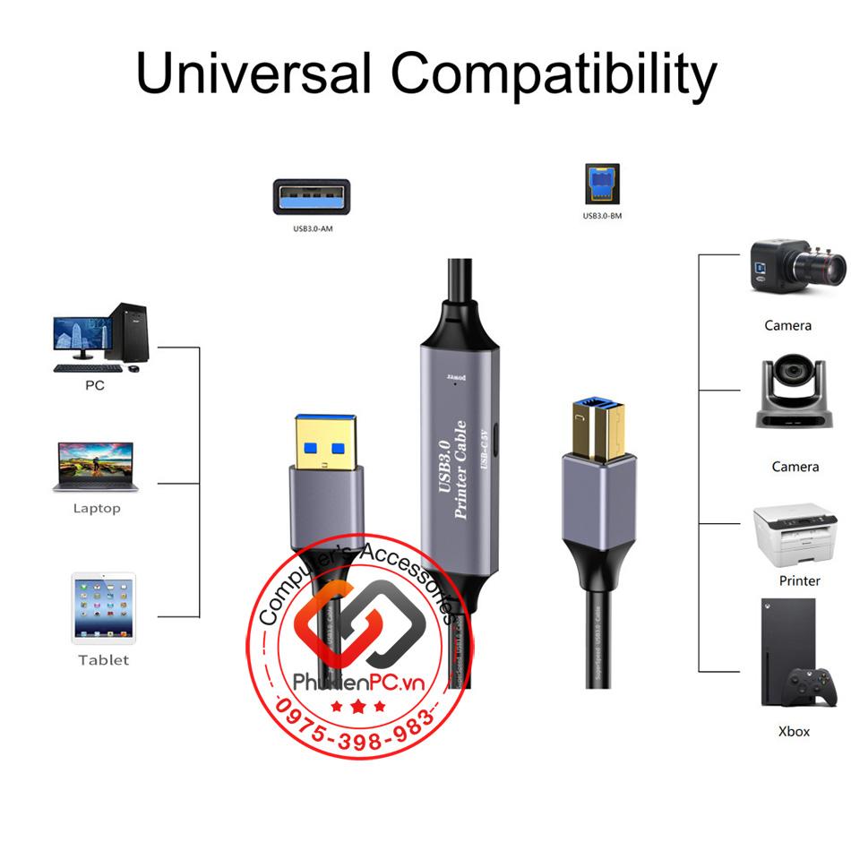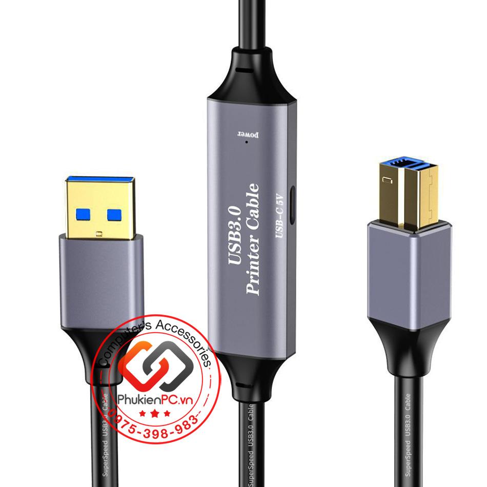 Cáp USB 3.0 AM-BM dài 5M có chip đẩy tín hiệu cho máy in, Camera