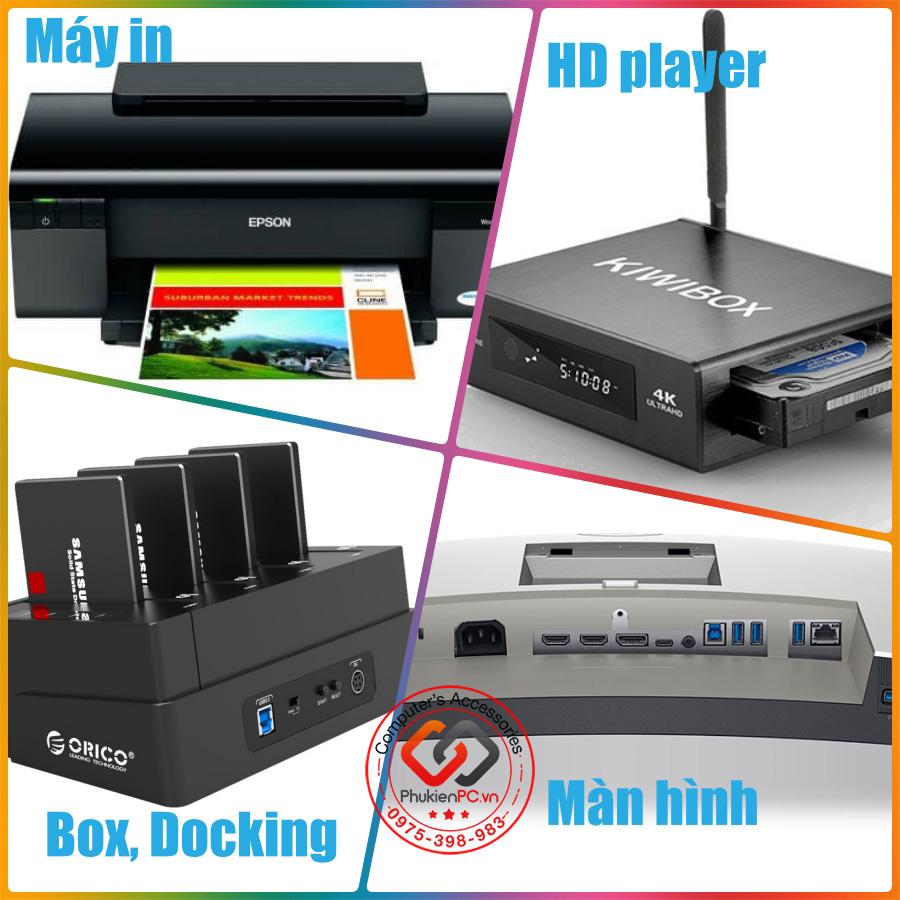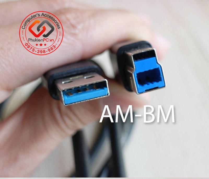Dây cáp chuyển đổi USB 3.0 AM-BM (Type A Male to Type B Male). Hay dùng kết nối máy tính ra các thiết bị lưu trữ Box ổ cứng HDD, SSD, Docking station, đầu đọc thẻ nhớ, máy in, máy scan, HD Player, camera, camcorder..