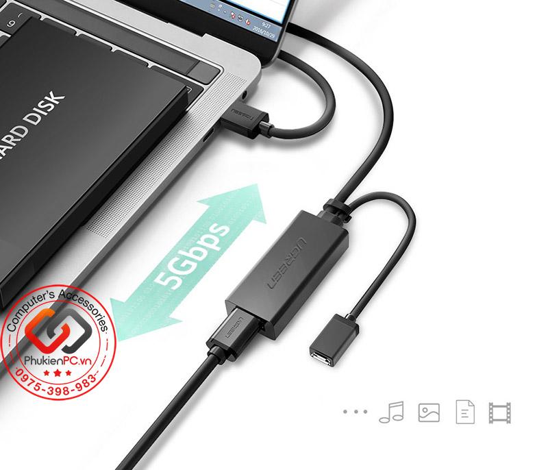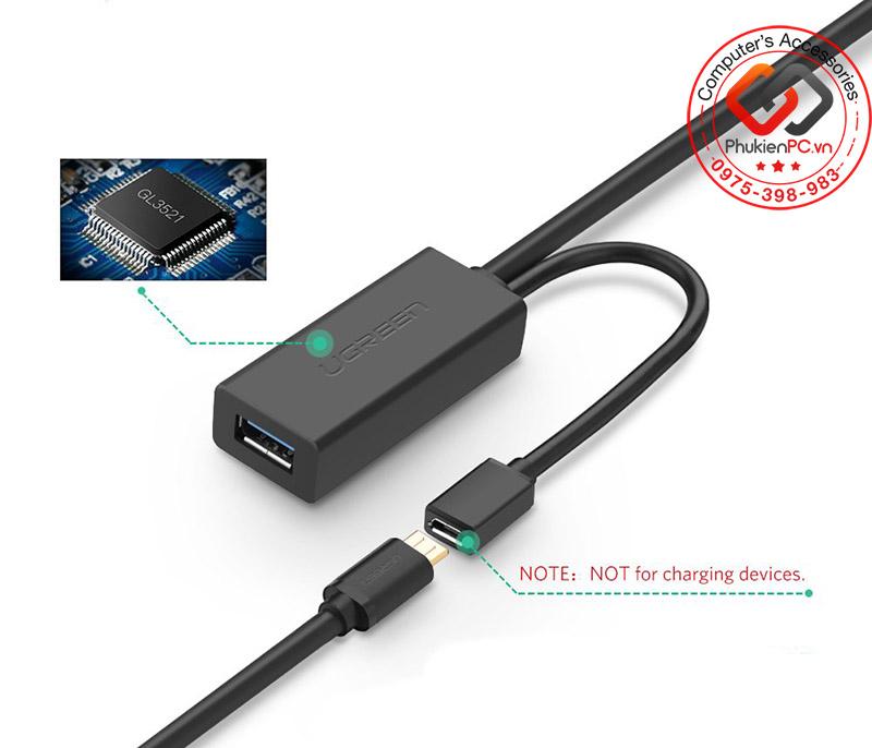 Hỗ trợ nguồn ngoài qua chân Micro USB, cấp nguồn bổ sung cho cáp. Cáp USB 3.0 nối dài hoạt động ổn định, không bị ngắt quãng.