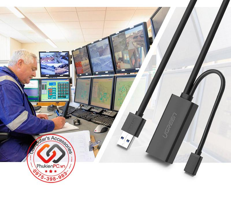 Cáp USB 3.0 nối dài có chipset đẩy tín hiệu (ic khuếch đại) 5M thương hiệu Ugreen 20826 chính hãng. Sử dụng cho máy in, máy in công nghiệp, camera công nghiệp, ổ cứng cắm ngoài, ổ cứng di động, chuột, bàn phím, máy scanner, webcam…
