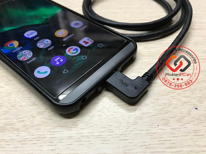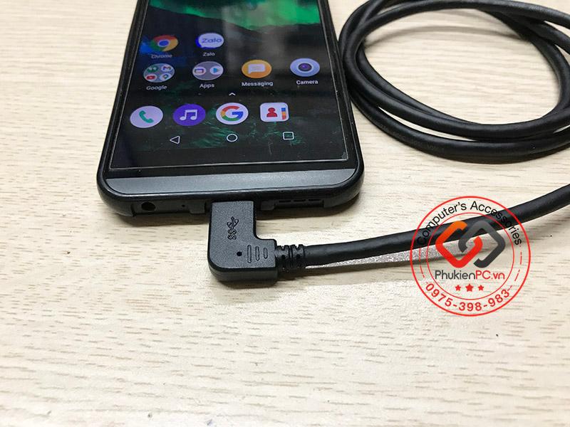 Hình ảnh chụp thực tế: cáp USB 3.0 Type A-Type-C bẻ góc 90 độ