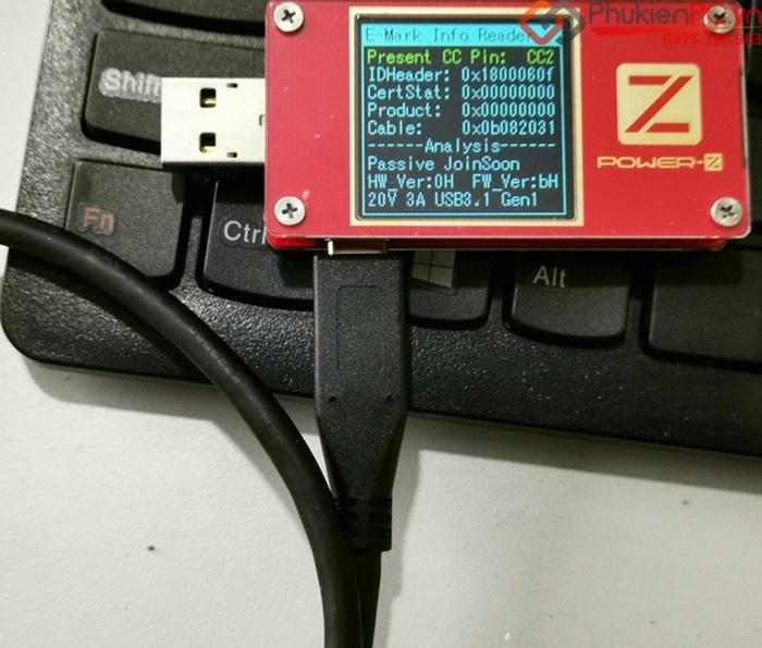 Sử dụng chipset E-Marker hỗ trợ sạc thông minh, tự điều chỉnh nguồn điện cho các thiết bị di động, laptop. Hỗ trợ dòng lên đến 60W