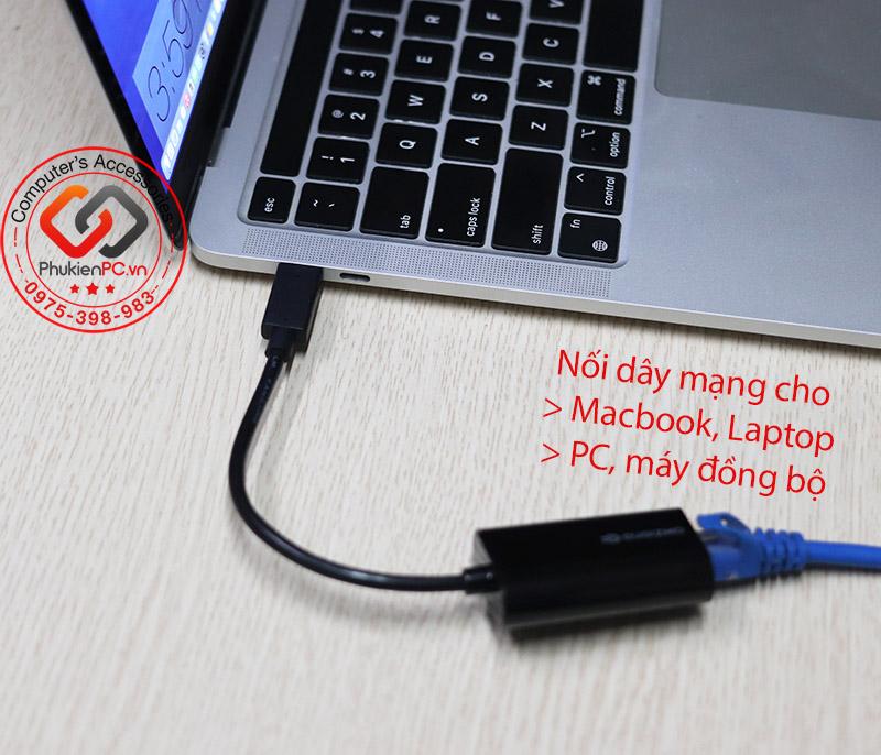 Cáp chuyển đổi tín hiệu từ USB-C (Type-C, Thunderbolt 3/4) sang cổng mạng LAN (ethernet). Sử dụng kết nối mạng LAN, mạng nội bộ cho cho các dòng Laptop, Macbook, Surface, PC, máy tính đồng bộ.