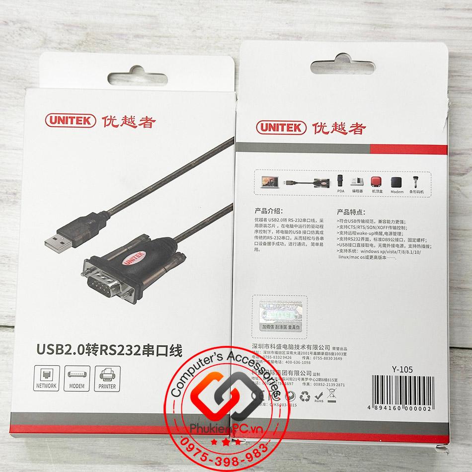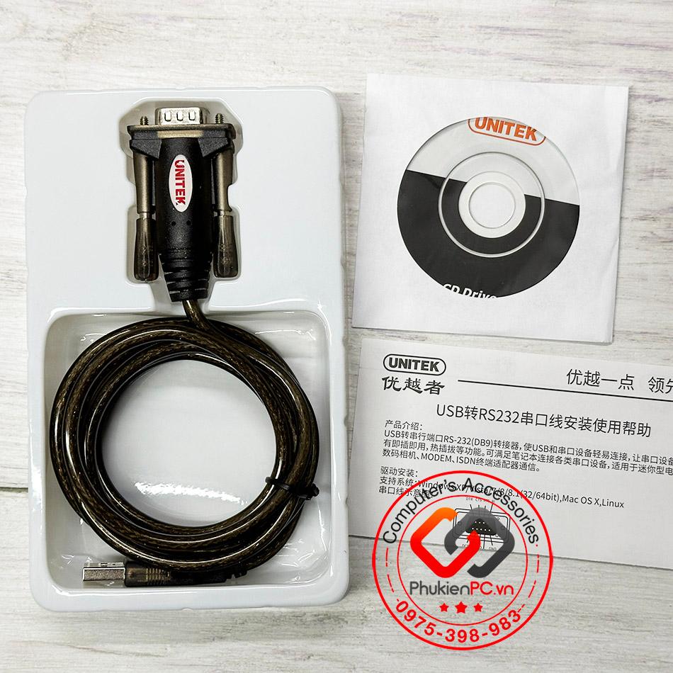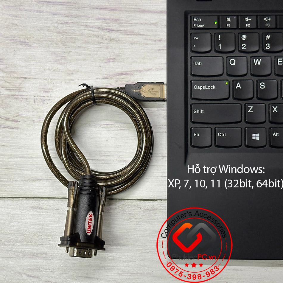 Cáp USB sang COM RS232 Unitek Y-105 dài 1.5M Win XP, 7, 8, 10, 11