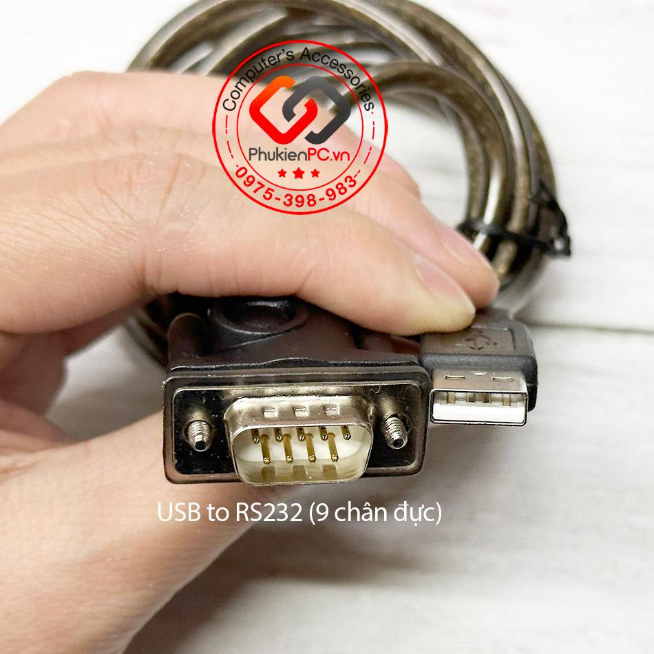 Bạn cần chuyển đổi USB sang RS232 Female, bạn kết hợp với đầu nối RS232 Female-female (cái-cái)