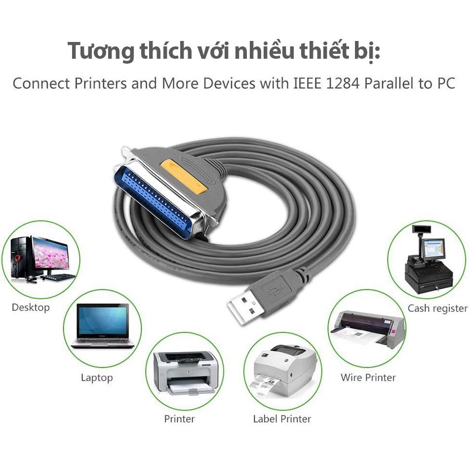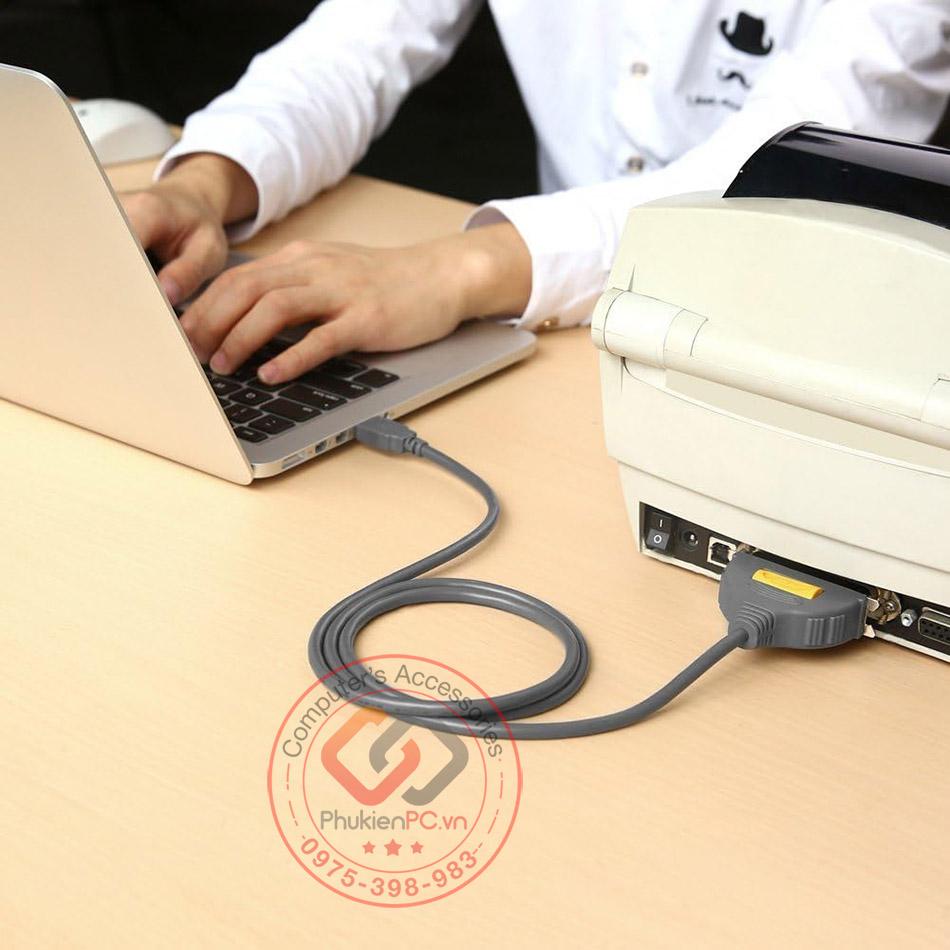 Cáp USB sang Parrallel IEEE 1284 cho máy in, máy in kim, in phun, laser. Thương hiệu Ugreen 20225, chất lượng cao. Kết nối máy tính sang các dòng máy in kim, laser, cắt decal sử dụng chân cắm CN36.