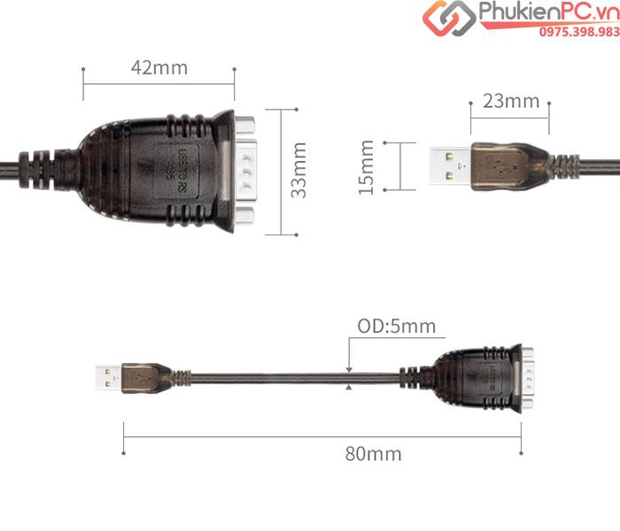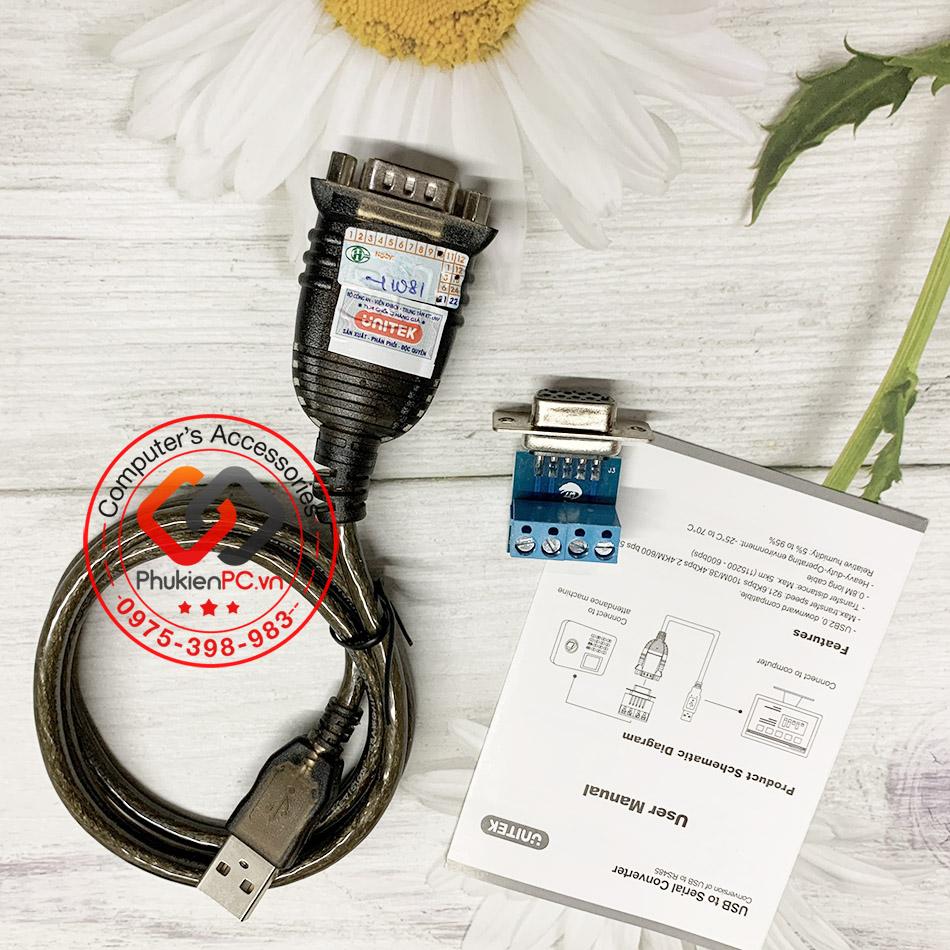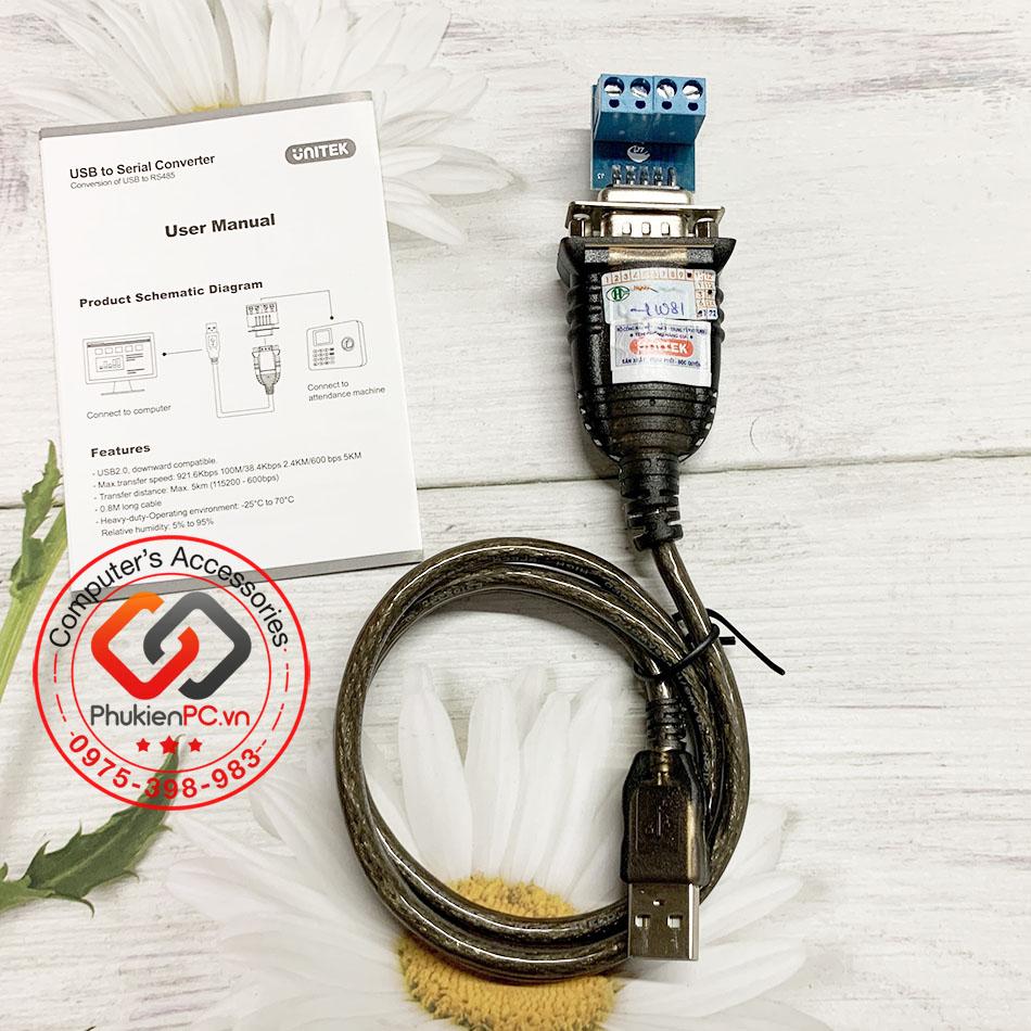 Cáp USB sang COM RS485 Unitek Y-1081 chip FTDI FT232 hỗ trợ Win 2000 XP 7 10 11 (32bit, 64bit)