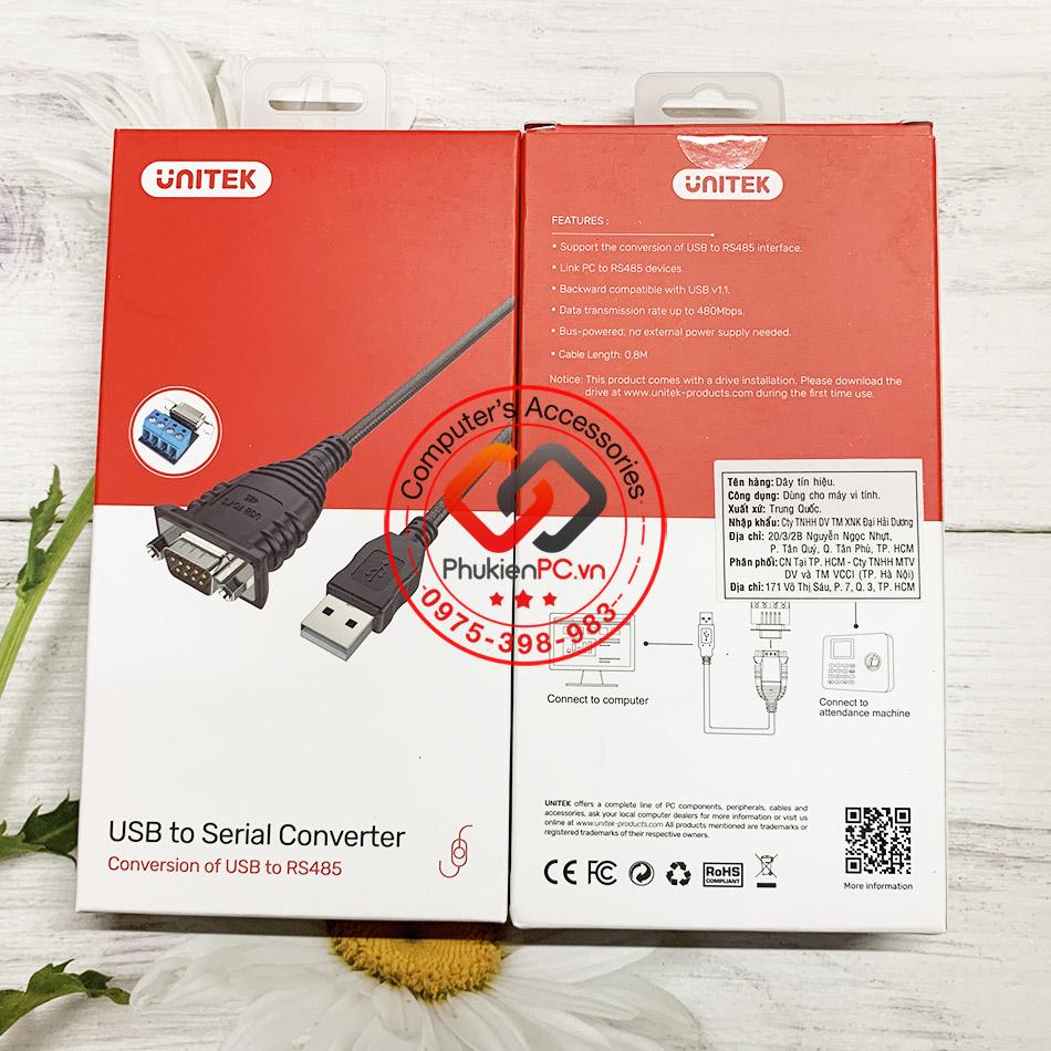 – USB to COM RS485 hãng UNITEK sử dụng chipset FTDI chất lượng cao, một trong adapter được người dùng đánh giá cao trên thị trường. Tính ổn định cao, bền bỉ trong quá trình sử dụng.