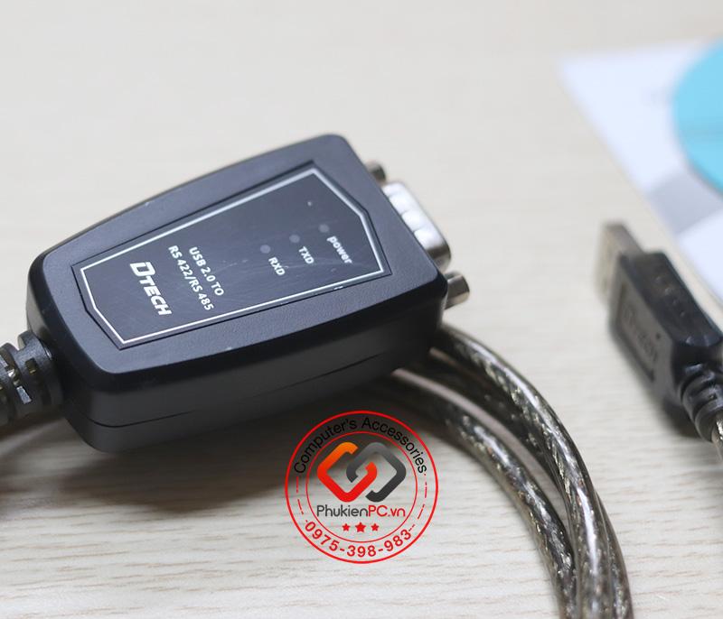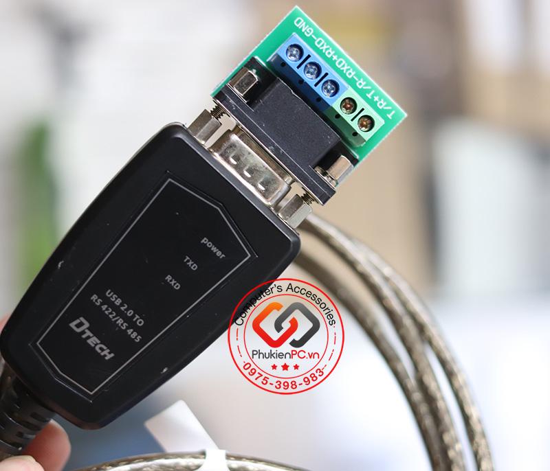 Cáp chuyển đổi USB sang RS422 RS485 hãng Dtech có đèn LED