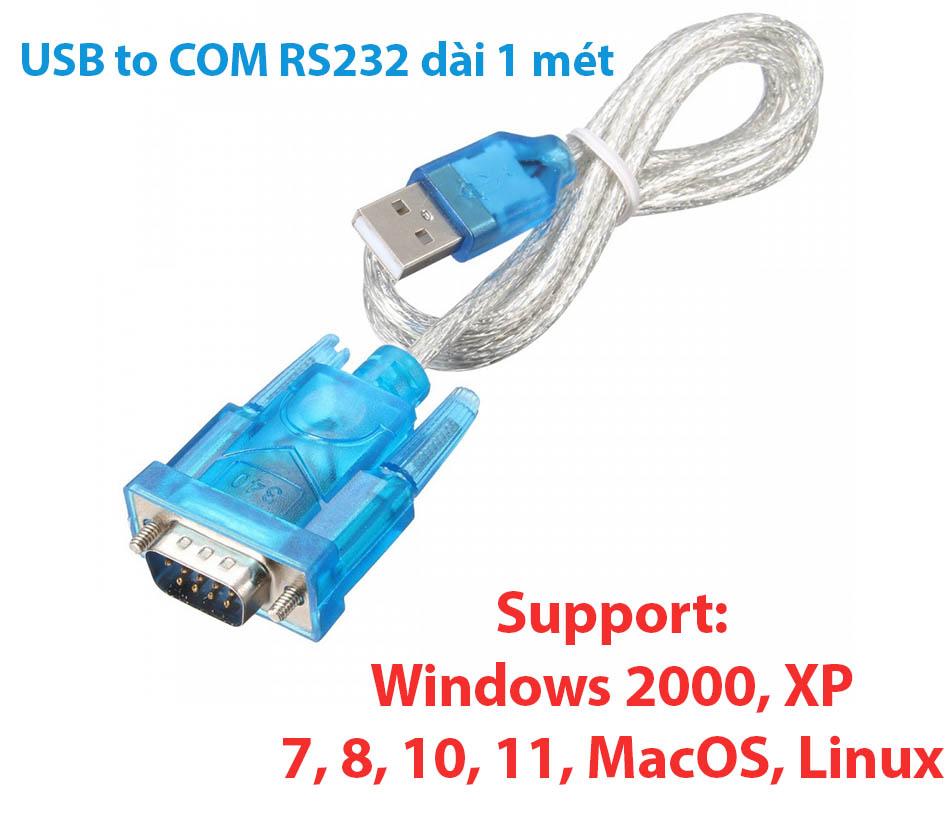 Cáp USB to COM RS232 hỗ trợ Win XP, 7, 8, 10, 11