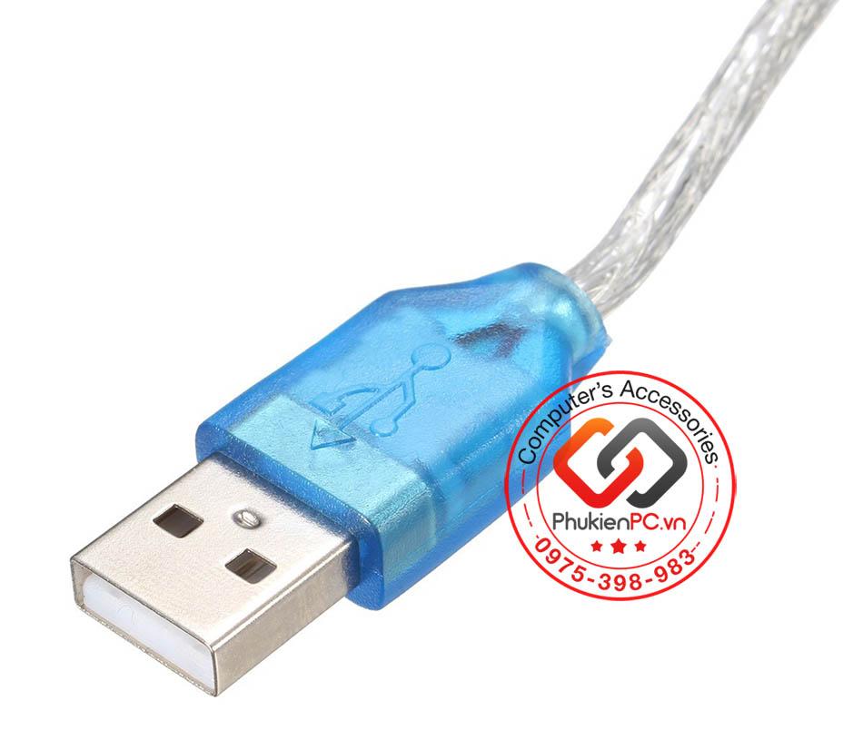 Màu sắc: Đầu USB, COM xanh, dây nhựa trong