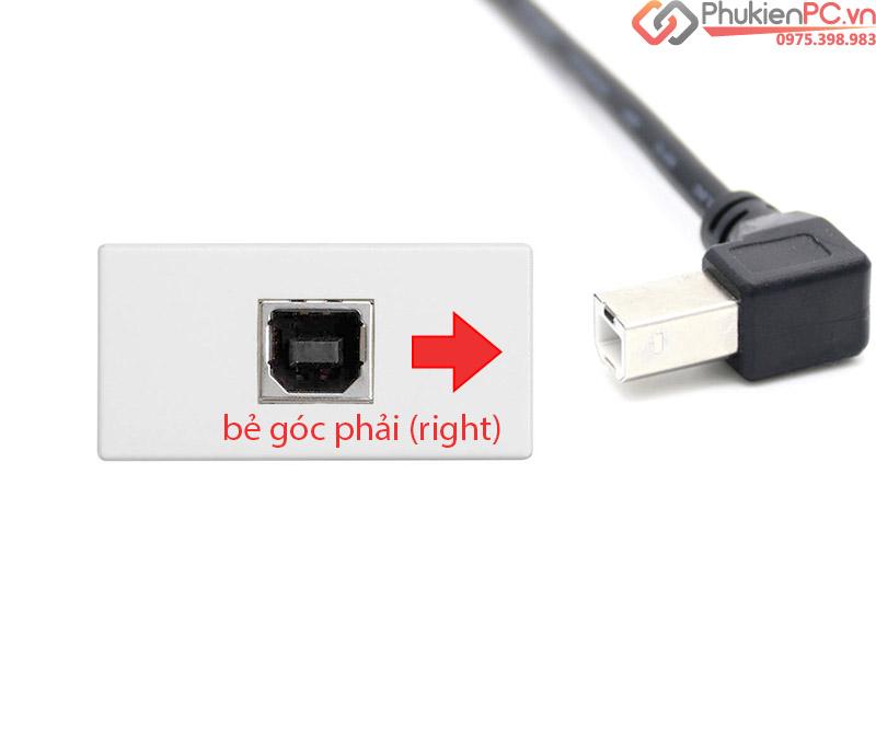 Đầu USB Type B male thiết kế bẻ góc (gập góc) theo hướng phải (right). Điều này giúp bạn thuận tiện trong việc lắp đặt thiết bị, không gian hẹp-nhỏ.