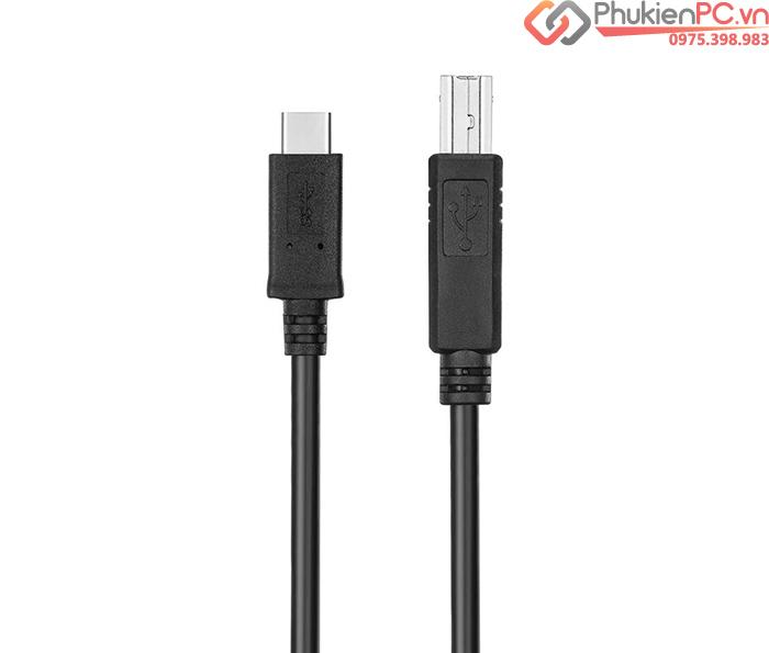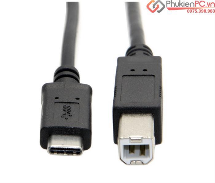 Dây cáp chuyển đổi cổng USB Type C sang USB 2.0 Type B (chân cắm máy in). Chuyển đổi 2 chiều giữa 2 chuẩn Type C và Type B.