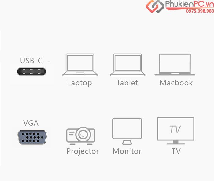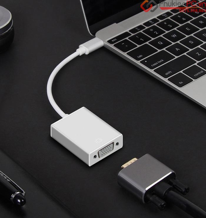 Cáp chuyển đổi USB-C (Thunderbolt 3, Type C) sang tín hiệu VGA. Sử dụng kết nối Macbook, Laptop, điện thoại ra máy chiếu VGA, màn hình LCD máy tính.