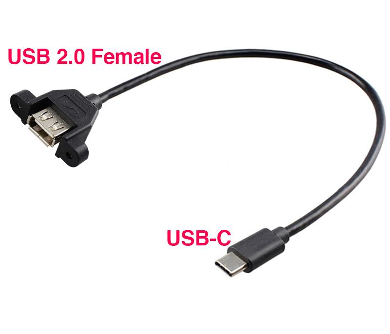 Dây cáp chuyển đổi USB Type C to USB 2.0 Female (chân cái, cáp type c otg) đầu bắt vít. Dây cáp hay dùng cho nhà máy test, kiểm thử, sản xuất các loại cáp USB, cáp data dữ liệu. Ngoài ra, cáp sử dụng cho các thiết bị kỹ thuật chuyên dụng gắn panel, thùng máy…