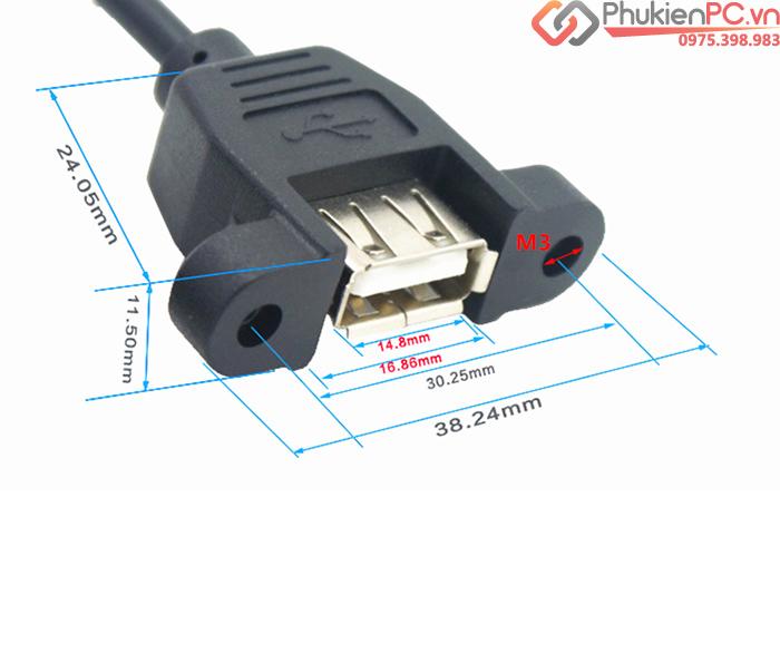 Đầu USB Female thiết kế dạng bắt vít, bạn dễ dàng lắp đặt thành máy, vỏ hộp thiết bị, vị trí đặc biệt…