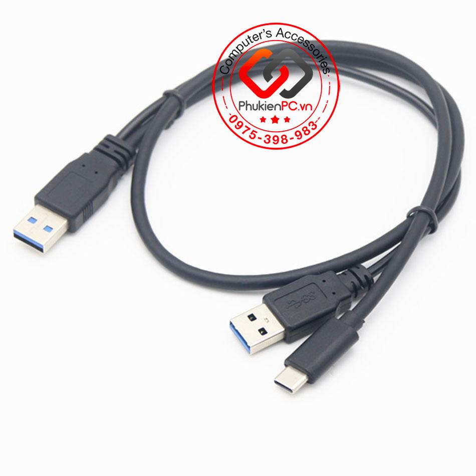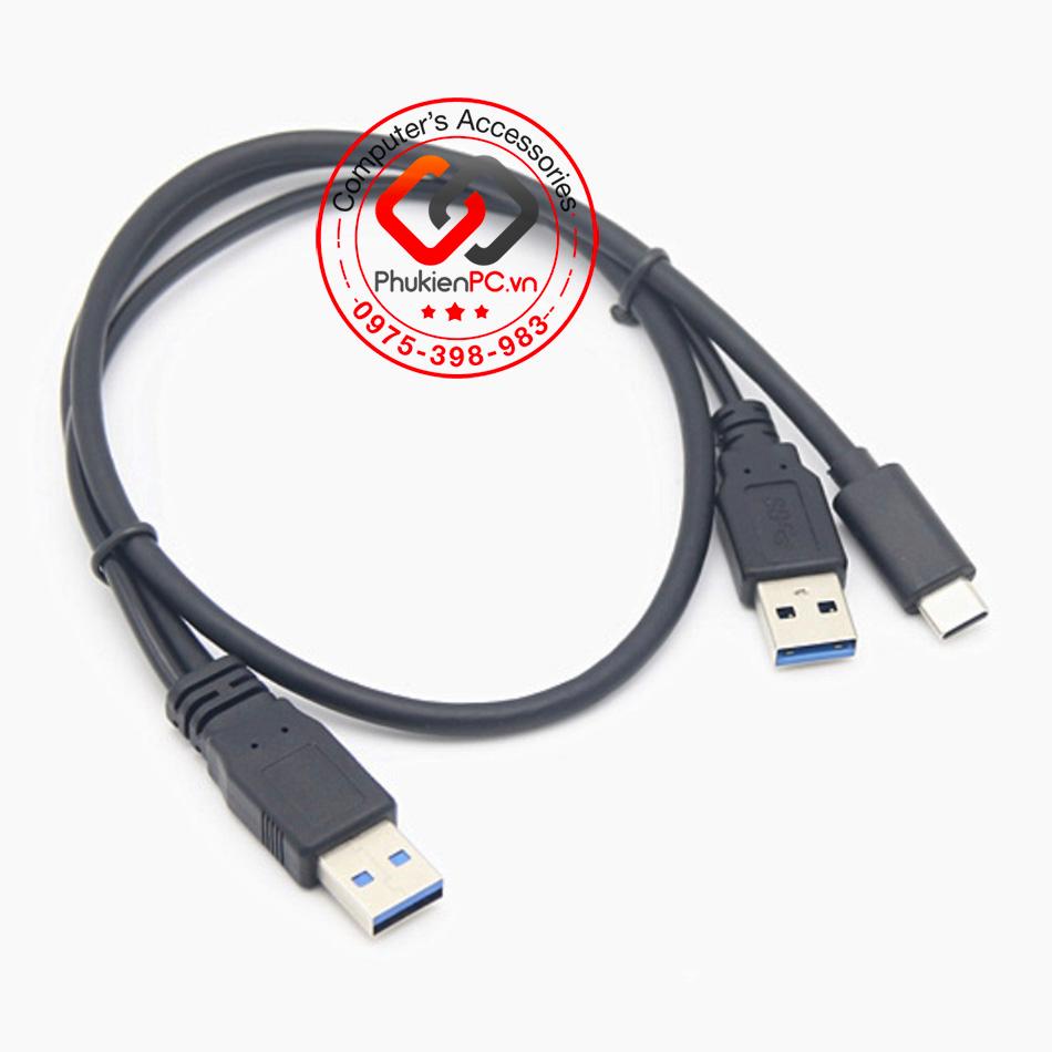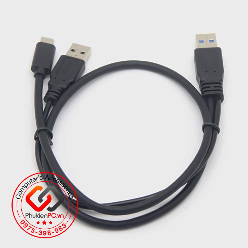 Dây cáp chuyển đổi USB 3.0 sang Type-c kèm nhánh USB cấp nguồn phụ bổ sung cho thiết bị. Sử dụng cho các thiết bị điện tử, di động, thiết bị lưu trữ, đa phương tiện, camera hội nghị….